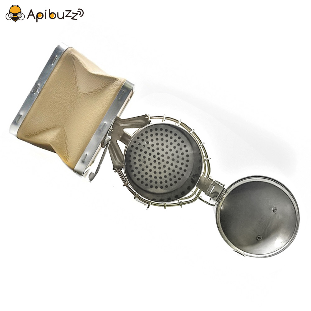 【 Usage 】Open top cover of bee smoker. Add dry leaves of hay into combustion chamber then close the cover. Compress the airbag bellows to below the smoke.